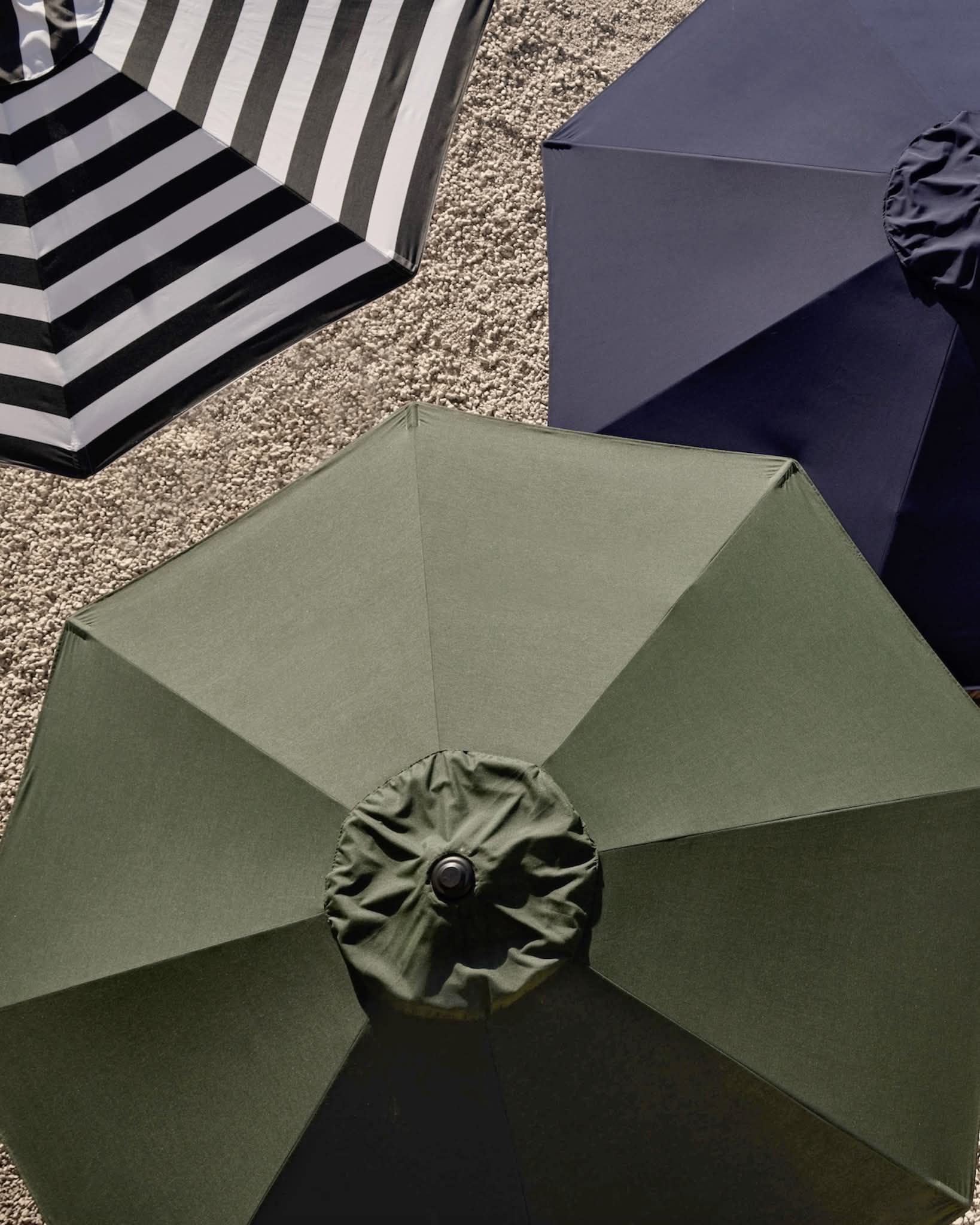 Todos los toldos de nuestras sombrillas se pueden fabricar con o sin salida de aire (sencilla o doble). La salida de aire permite que el viento circule manteniendo la fuerza y resistencia de la sombrilla.